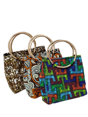Àkànké Ankara Tote Bag with Wooden Handles
