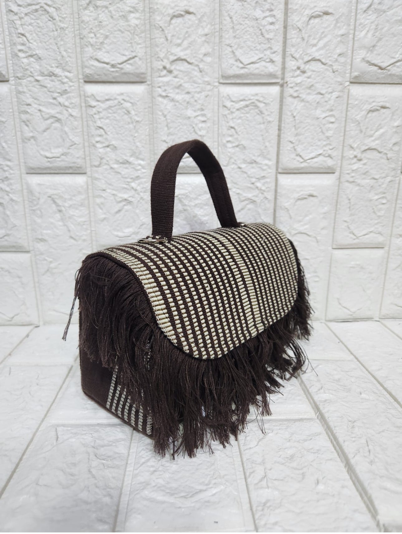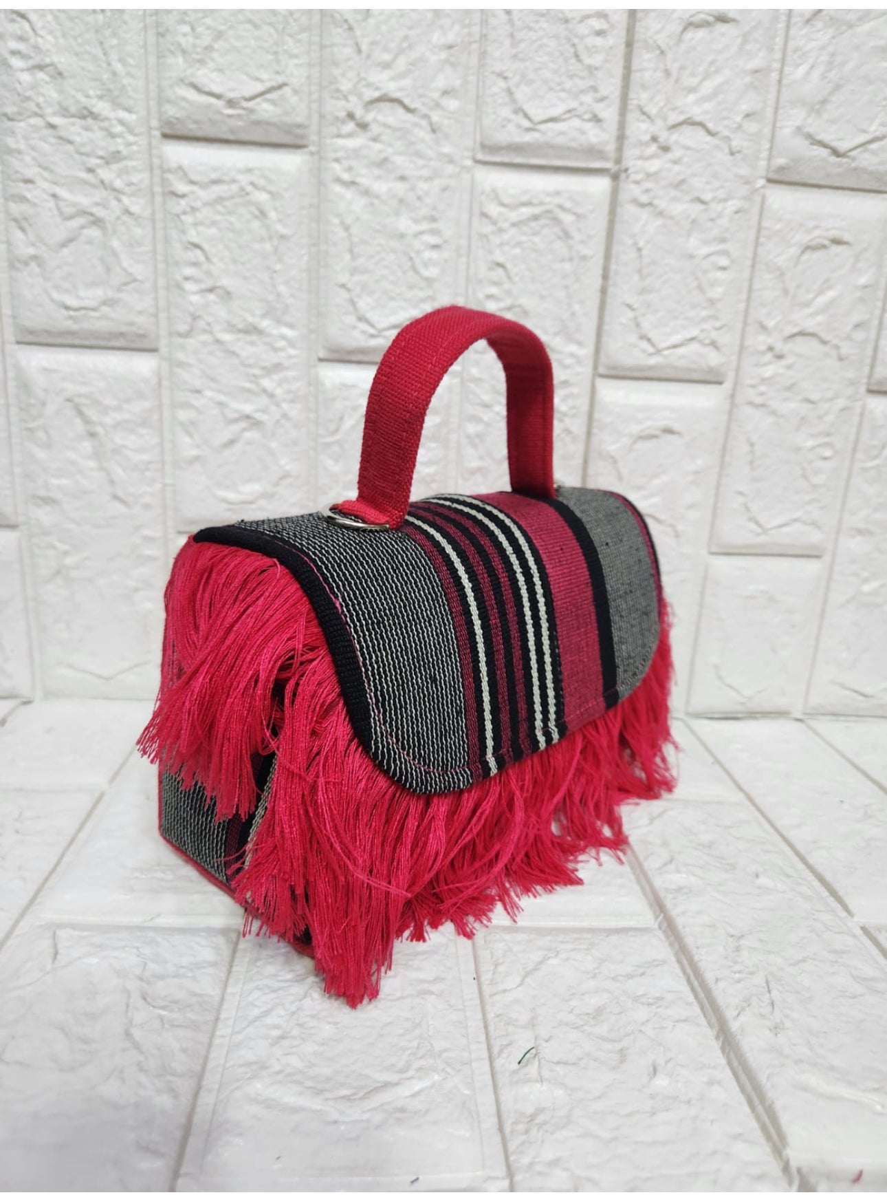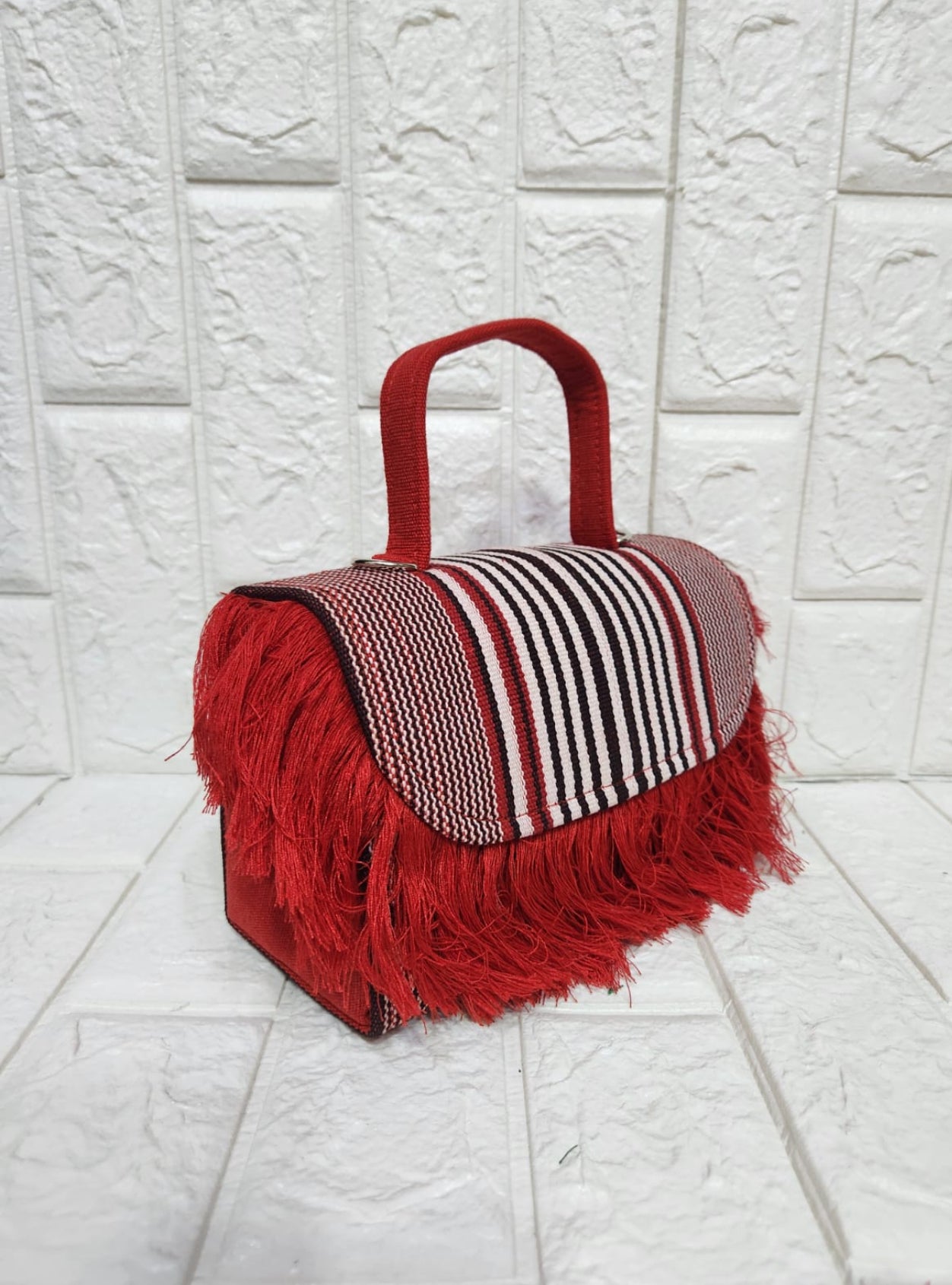 Add a touch of tradition and bold elegance to your collection with the Aso-Oke Mini Fringe Bag, a timeless piece with modern flair.