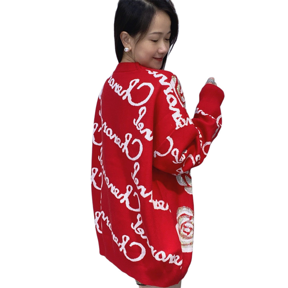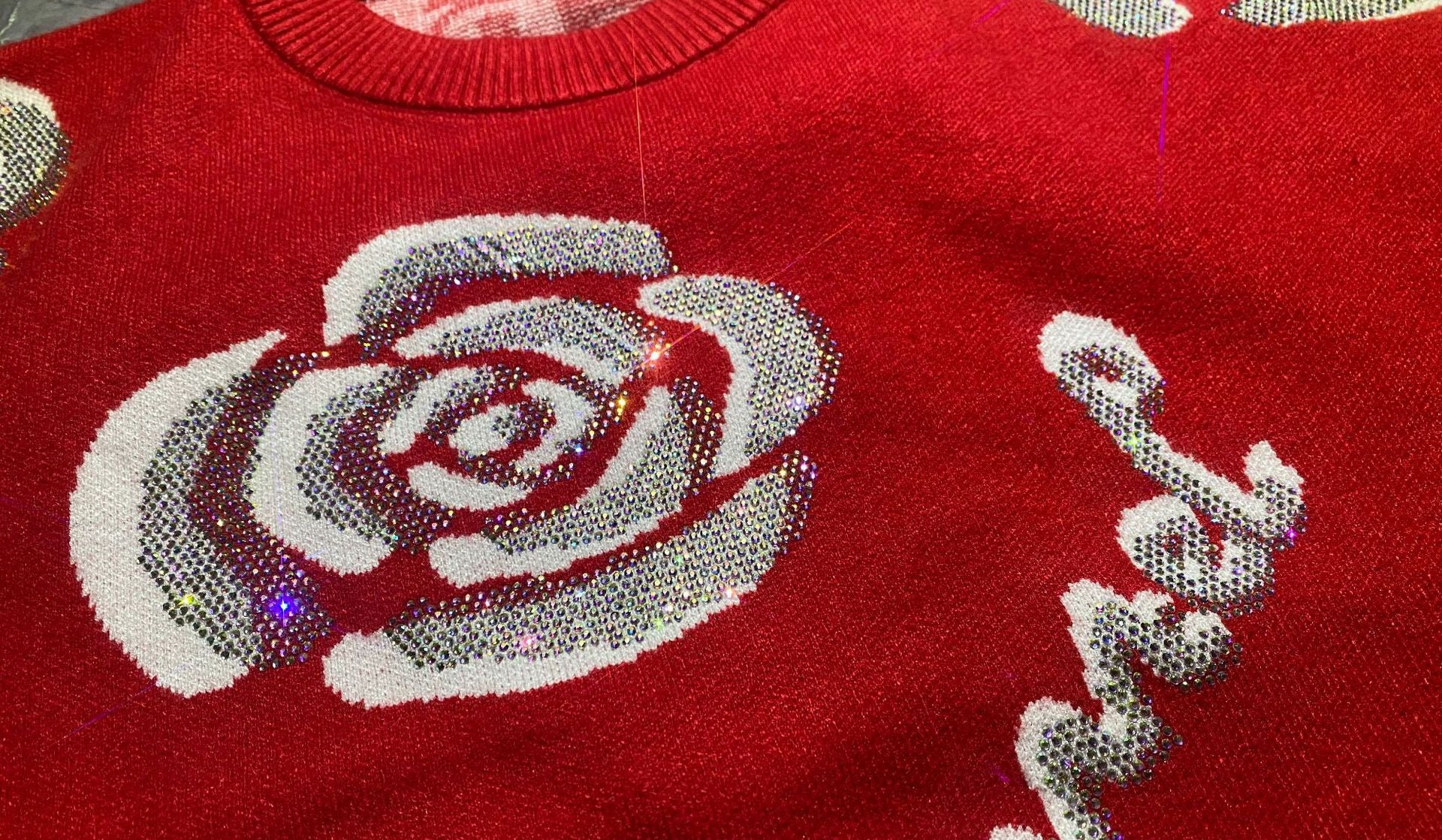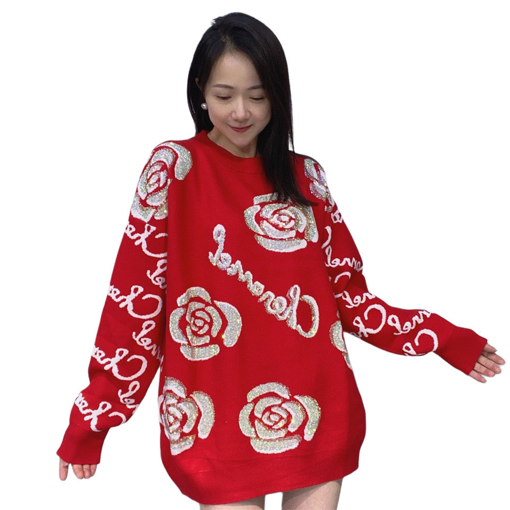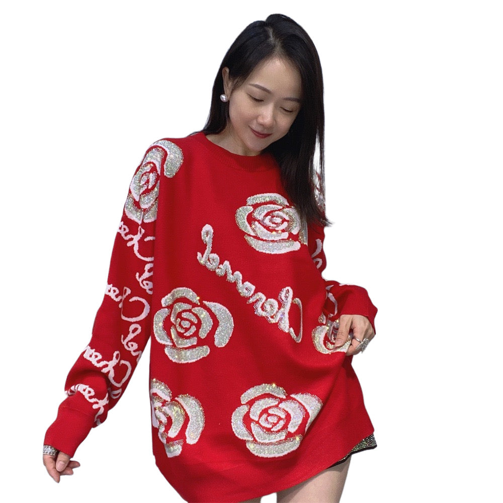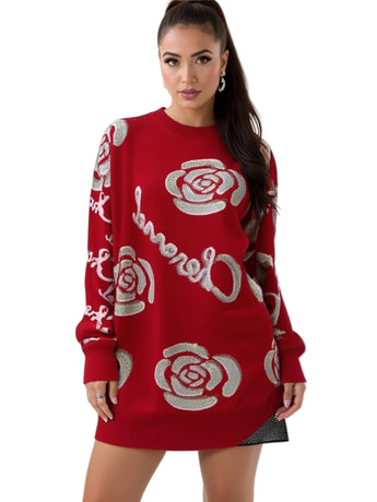 Rose Sparkle Jumper - Oversized Fit (Red)